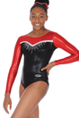 The Z595ELE Elevate long sleeved gymnastics leotard. Raise your game to the next level in the stunning Elevate panelled gymnastics leotard, featuring a stunning crystal motif. This high shine Nylon/Lycra leotard is also available in both girls' and women's sizes, up to a 40.